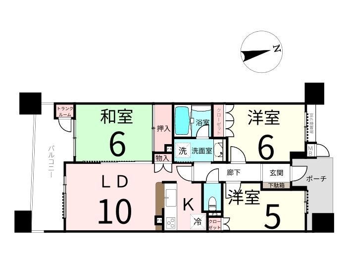 | 専有面積 | 壁芯 64.56㎡ | 所在階 | 14階建/10階部分 |